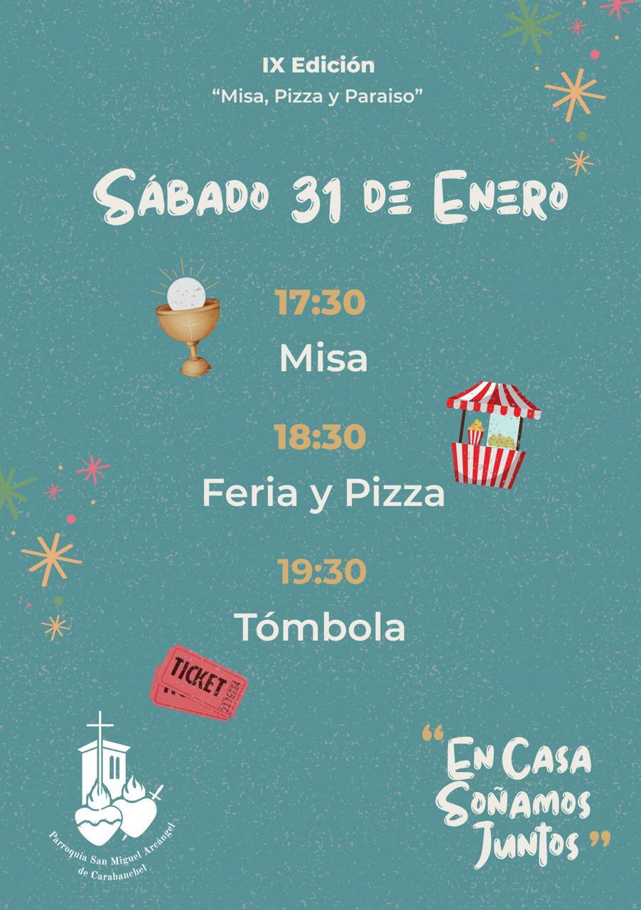 Es una fiesta para toda la comunidad parroquial, en la colaboramos todos. Es por ello que os invitamos a colaborar trayendo pizzas para el momentom de después de la misa, que será a las 17.30. Si os animáis a traerlas, por favor, necesitamos que estén hechas, de modo que tan solo sea necesario calentarlas en los microondas.